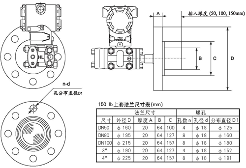 法蘭尺寸 插入長度 高壓側(cè)膜片材料